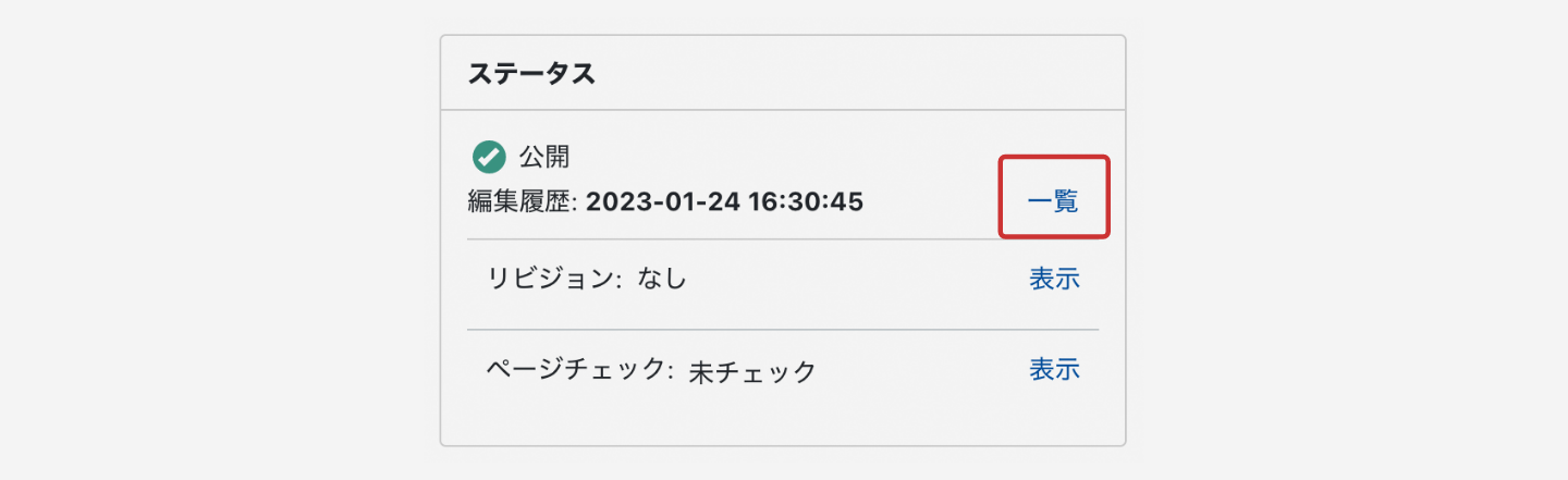 - ステータスウィジェットの[編集履歴]項目の右横にある[一覧]リンクをクリックします。