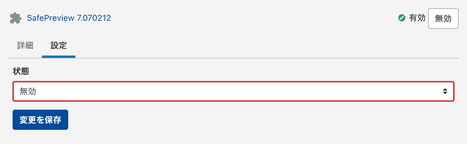 システム、サイト、子サイトブログダッシュボードから、SafePreviewプラグイン設定の[状態]を有効にします。