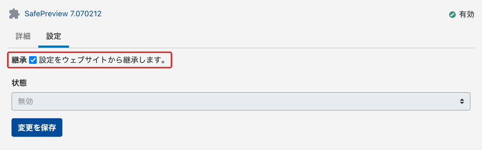 「設定をサイトから継承します」にチェックを入れると、親サイトのSafePreviewプラグイン設定を継承し利用します。