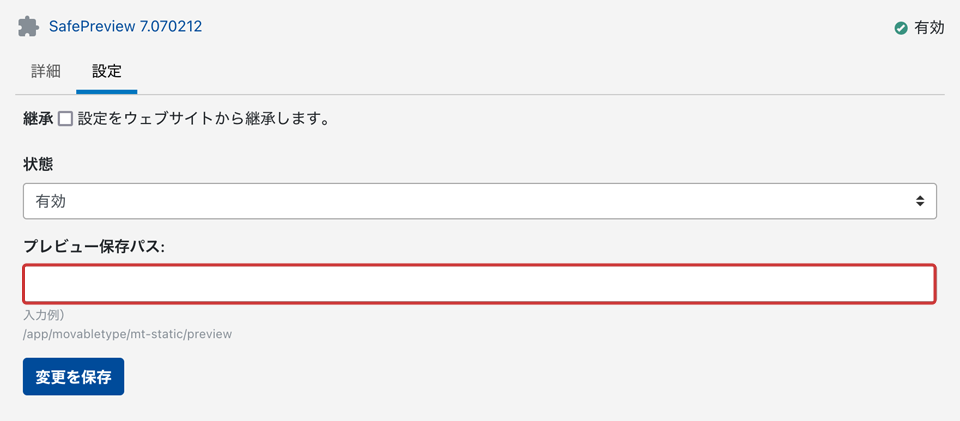 - [プレビュー保存パス]へプレビューファイルを保存するサーバーパスを入力します。