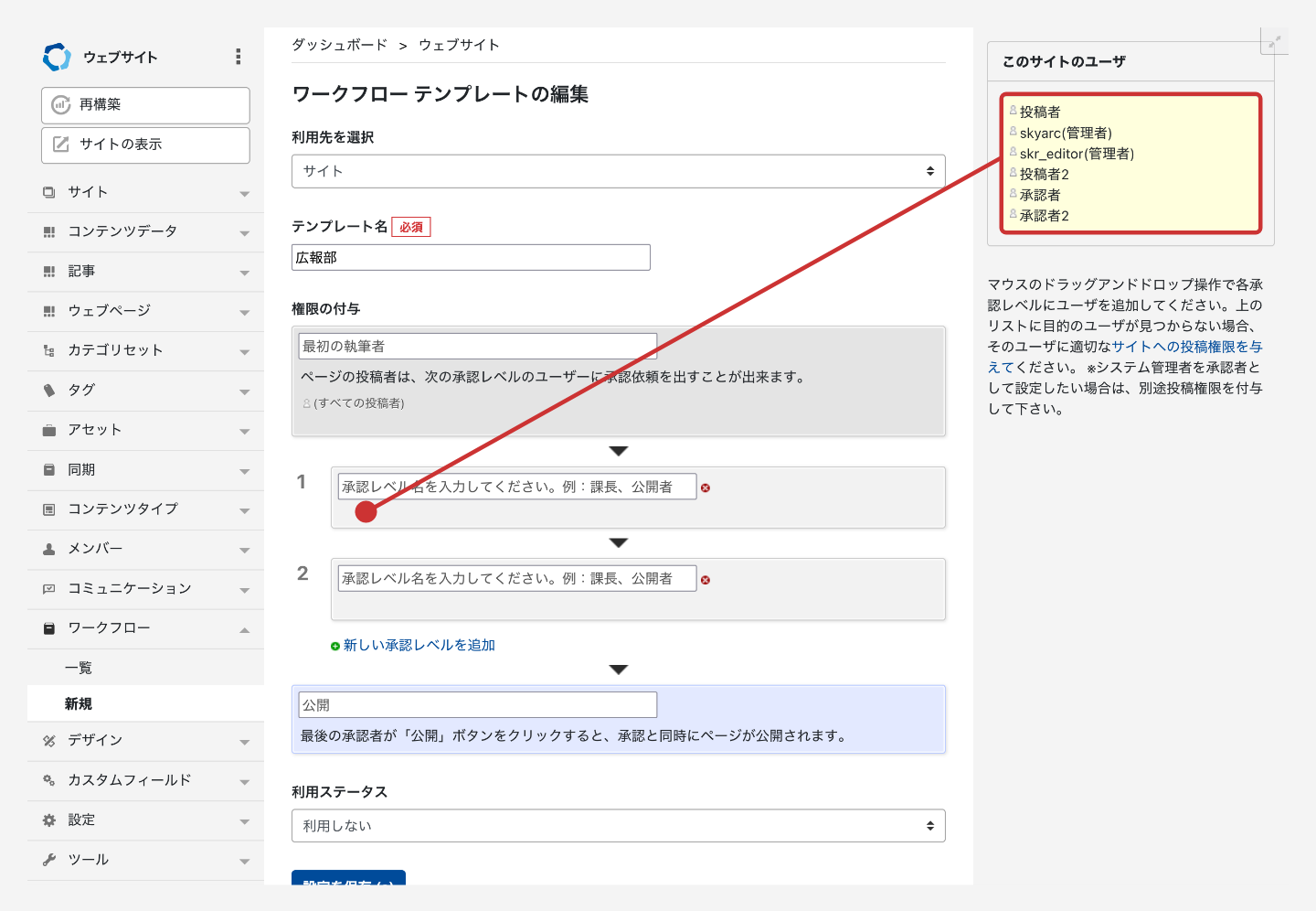 このプラグインは、ウェブページ・記事・コンテンツデータに対して承認後公開を実現するプラグインです。細かな権限設定、ドラッグアンドドロップによる直感的な承認ユーザーの追加など、高度な機能を簡単な操作でワークフローの構築が出来ます。