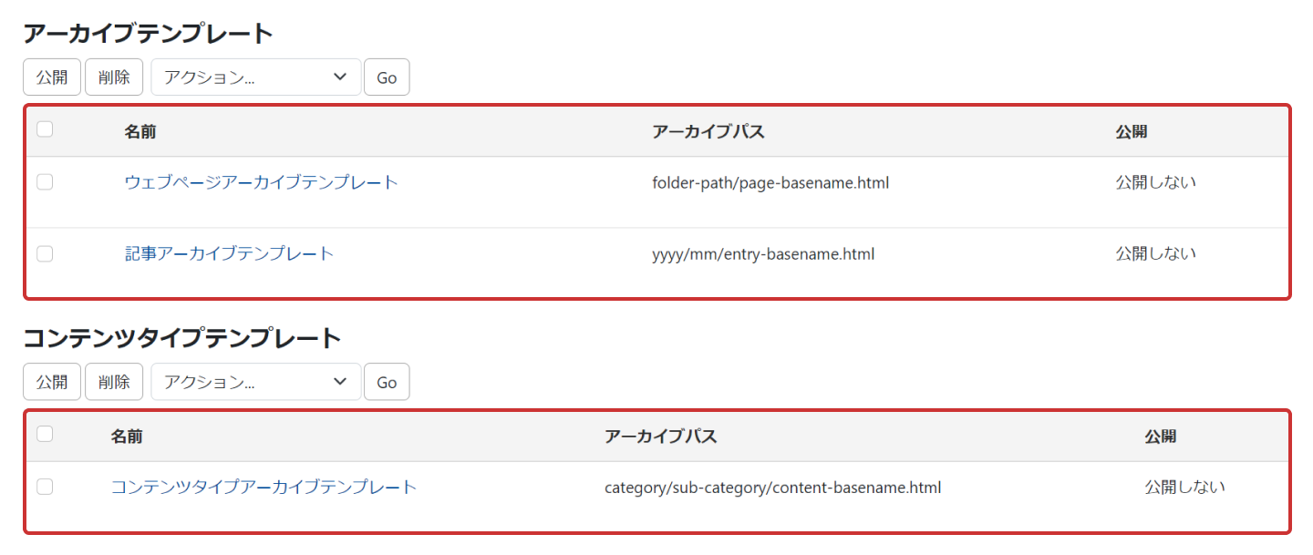 アーカイブテンプレートが無い場合、プレビュー表示等に不具合が起こる可能性がございます。